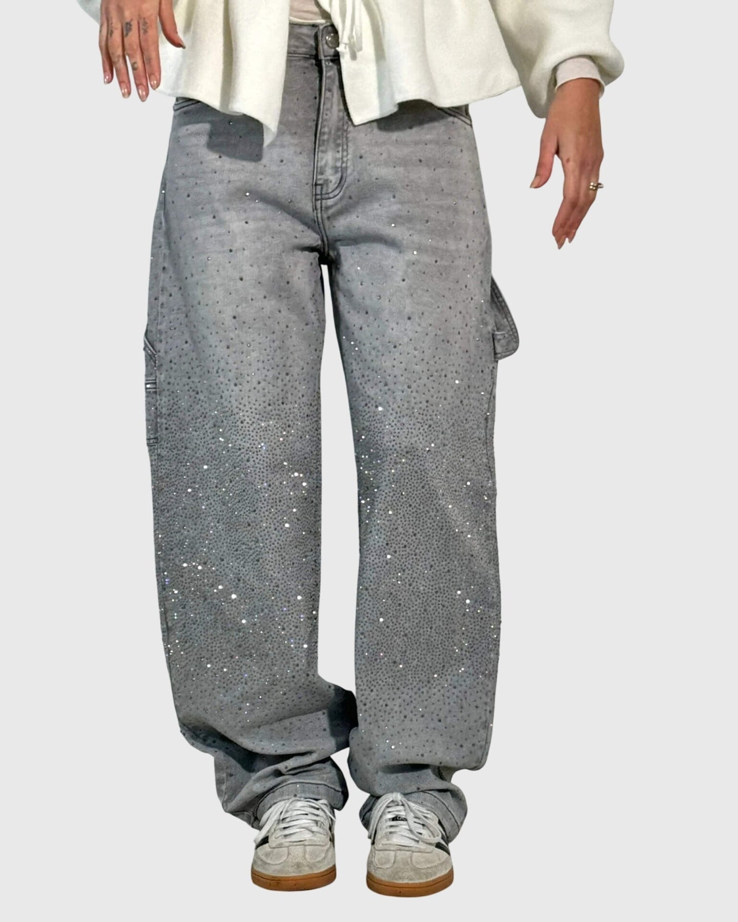 Stella Diamantbukserne forener klassisk elegance med daglig komfort, hvilket gør dem til det perfekte valg for enhver lejlighed. Hver detalje er omhyggeligt udformet med nøje udvalgte stoffer og diskrete diamantbesatte detaljer, der tilføjer et strejf af glamour uden at gå på kompromis med den rene silhuet.