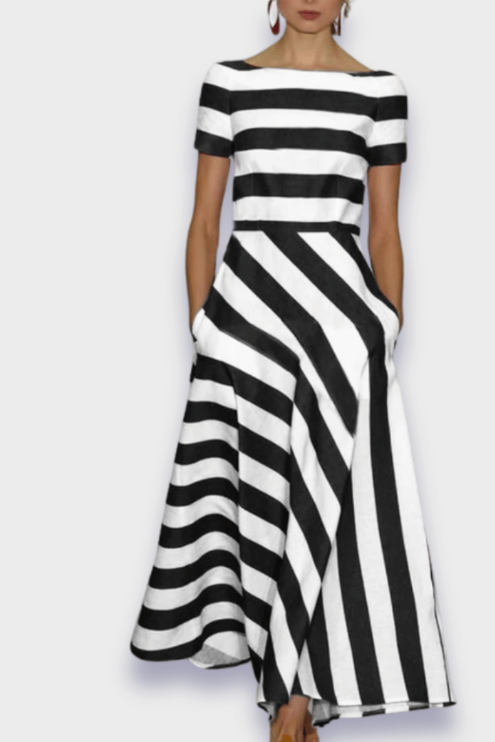 Louise | Håndlavet stribet er den perfekte kombination af komfort og kunstnerisk håndværk. Denne sofistikerede kjole er designet til kvinder, der ønsker at skille sig ud uden at gå på kompromis med ergonomi.