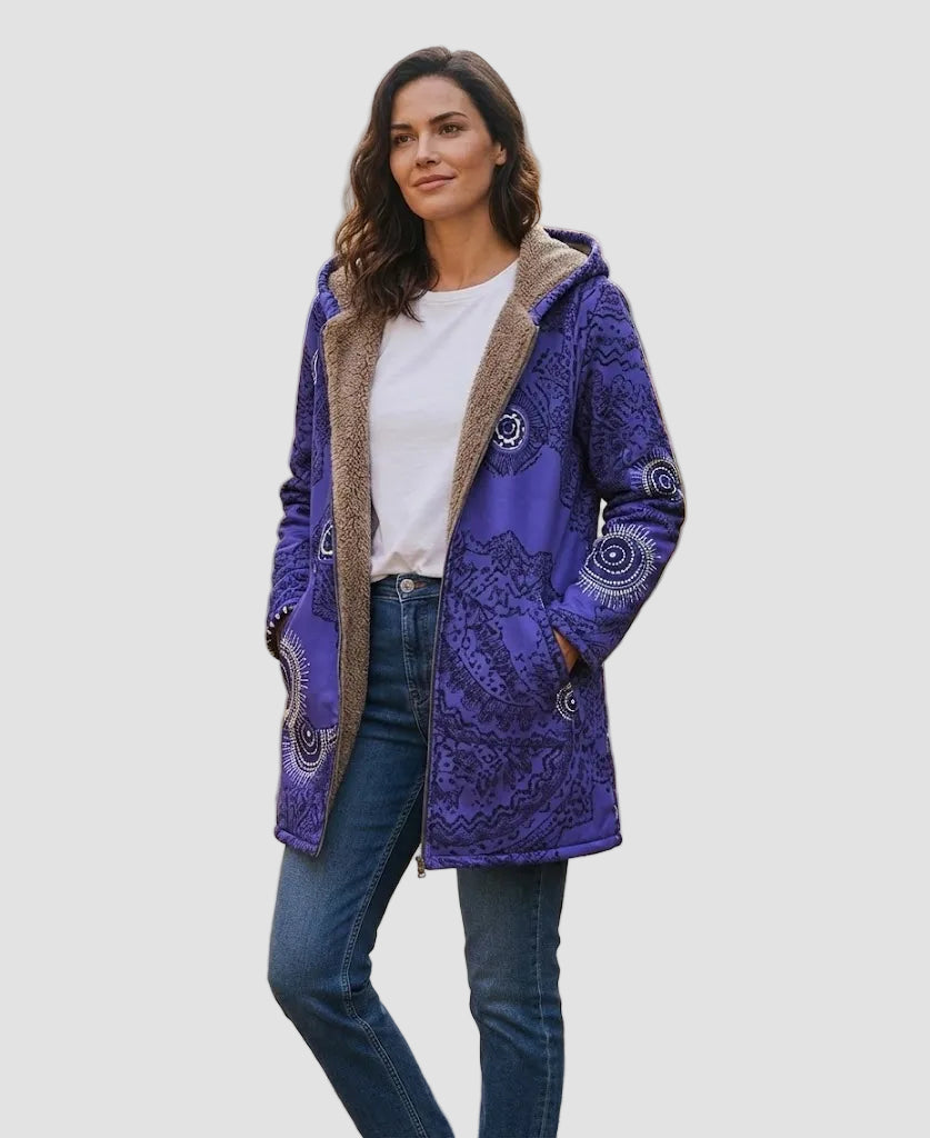 Mystisk Komfort i Hver Stik – Luna Midnatsblå Mandala Fleece Hoodie
