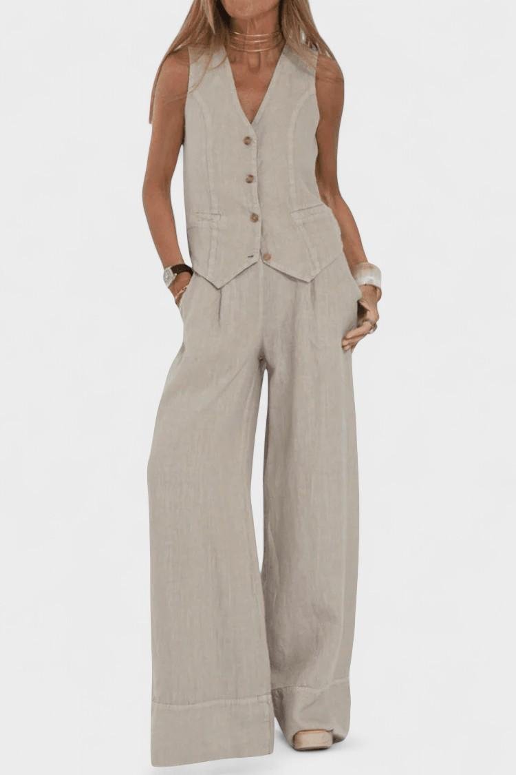 Alberte er et sofistikeret sæt, der forener håndværk med tidsløs elegance, hvilket signalerer eksklusivitet uden at være påtrængende. Den let draperede kvalitet sikrer naturligt fald og fri bevægelighed hele dagen.